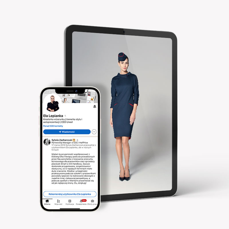 „Wydaje się, że sesja zdjęciowa to prosta sprawa. Fryzura, makijaż i termin w kalendarzu. Potem na chwilę zatrzymany uśmiech i po sprawie. Tymczasem stojąc oko w oko z aparatem fotograficznym dużo dzieje się w głowie. I to widać na zdjęciach. W naszych oczach, postawie, w naszym ostatecznym wizerunku. Świadomość ciała, własnych wartości, wagi pierwszych 11 sekund, a także analizę kolorystyczną i dzięki niej odpowiedni ubiór, spójny z tym, co wewnątrz nas, przygotowanie detali i podpowiedzi zapewni Ela Lepianka. Fryzura i makijaż również będą doskonałe. Zaopiekowanie przed i świetna, twórcza atmosfera podczas sesji to coś niepowtarzalnego, co otrzymujemy od Eli Lepianki i Olgi Majrowskiej. Dają coś więcej niż piękne zdjęcia. To holistyczne podejście do człowieka, które wraz ze zdjęciami zostaje z nim na dłużej. Dotyczy to zarówno zdjęć indywidualnych, jak i projektów wizerunkowych całej organizacji. Miałam wielką przyjemność wraz z całym Zespołem People & Law tego doświadczyć. Gorąco polecam!!”